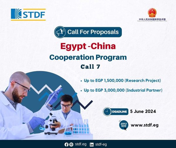 تعلن هيئة تمويل العلوم والتكنولوجيا والابتكار (STDF)، بالتعاون مع وزارة العلوم والتكنولوجيا بجمهورية الصين الشعبية عن فتح باب التقدم لبرنامج التعاون بين مصر والصين في دورته السابعة والذي يهدف الى تعزيز التعاون بين الجهتين في المجالات ذات الاهتمام المشترك كالمياه،…